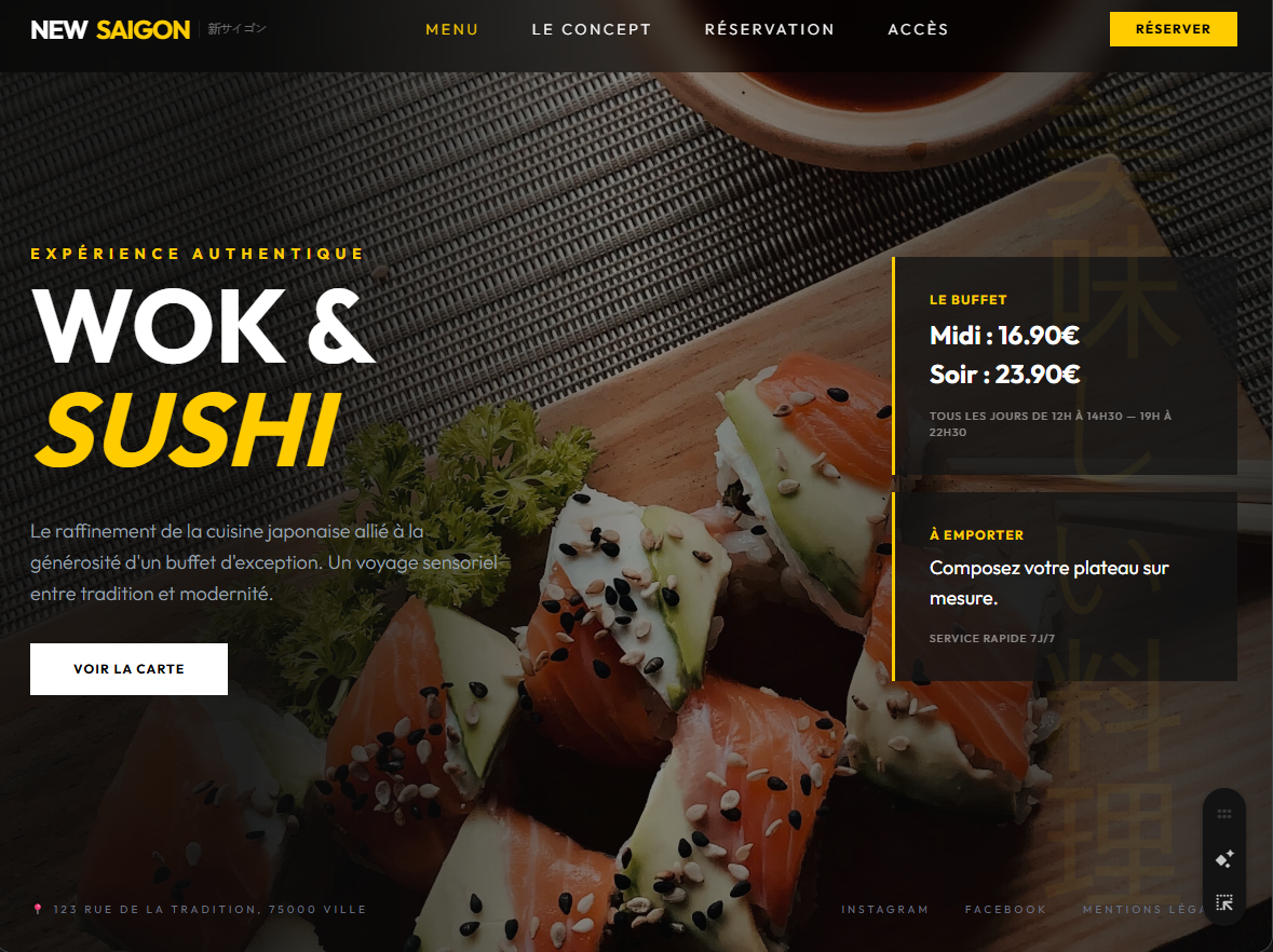 Refonte + réservationNotre ancien site faisait fuir les clients. Il a été entièrement repensé — moderne, rapide, à notre image. On reçoit des compliments dessus chaque semaine.